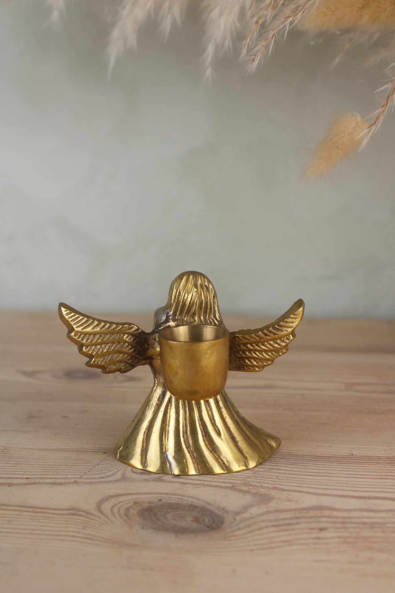 Introduce a touch of elegance to your home decor with our Brass Angel Candlestick Holder. Made from high-quality brass, this holder features a stunning angel design that adds a heavenly charm to any space. Elevate your ambiance with this eye-catching piece that holds candles securely for a warm and inviting glow.
